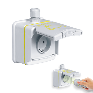 - Ausführung: 1-phasig, Schutzart IP44 (IP55 bei geschlossenem Deckel). Schlagefestigkeit IK08 (Aufputz Version, Kunststoff) und IK10 ( Unterputz Version, Metall-Druckguss)
